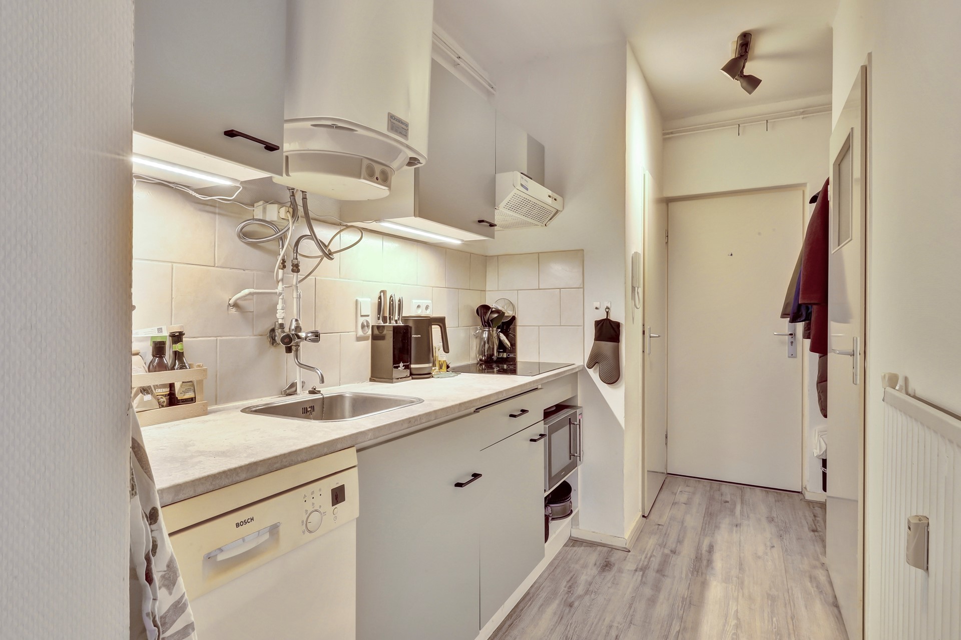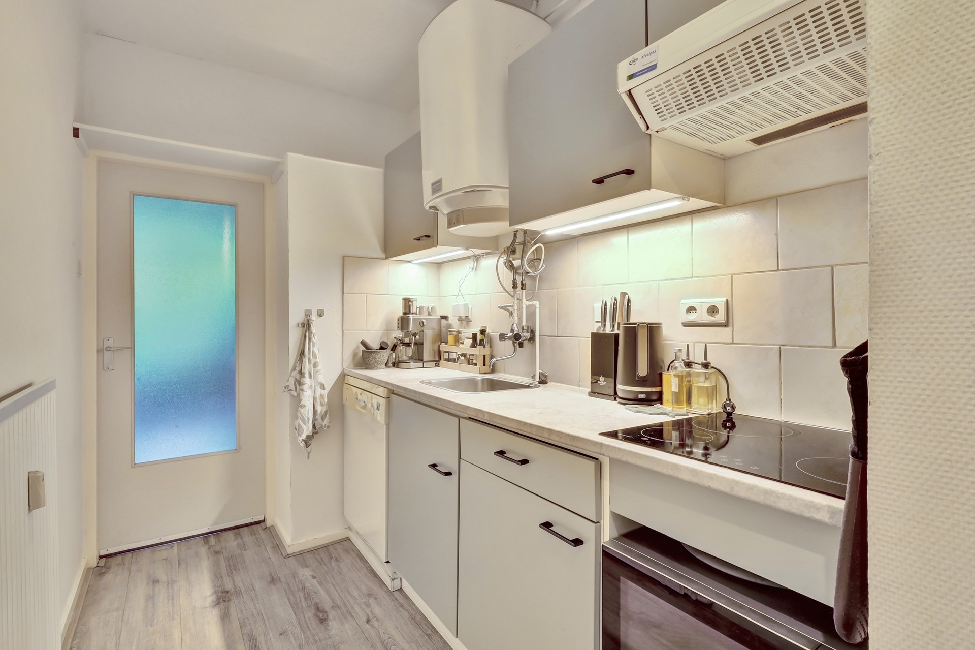 De hal geeft toegang tot de berg-/meterkast en de keuken, die is voorzien van een spoelbak, inductiekookplaat, afzuigkap (defect) en aansluiting voor een vaatwasser.