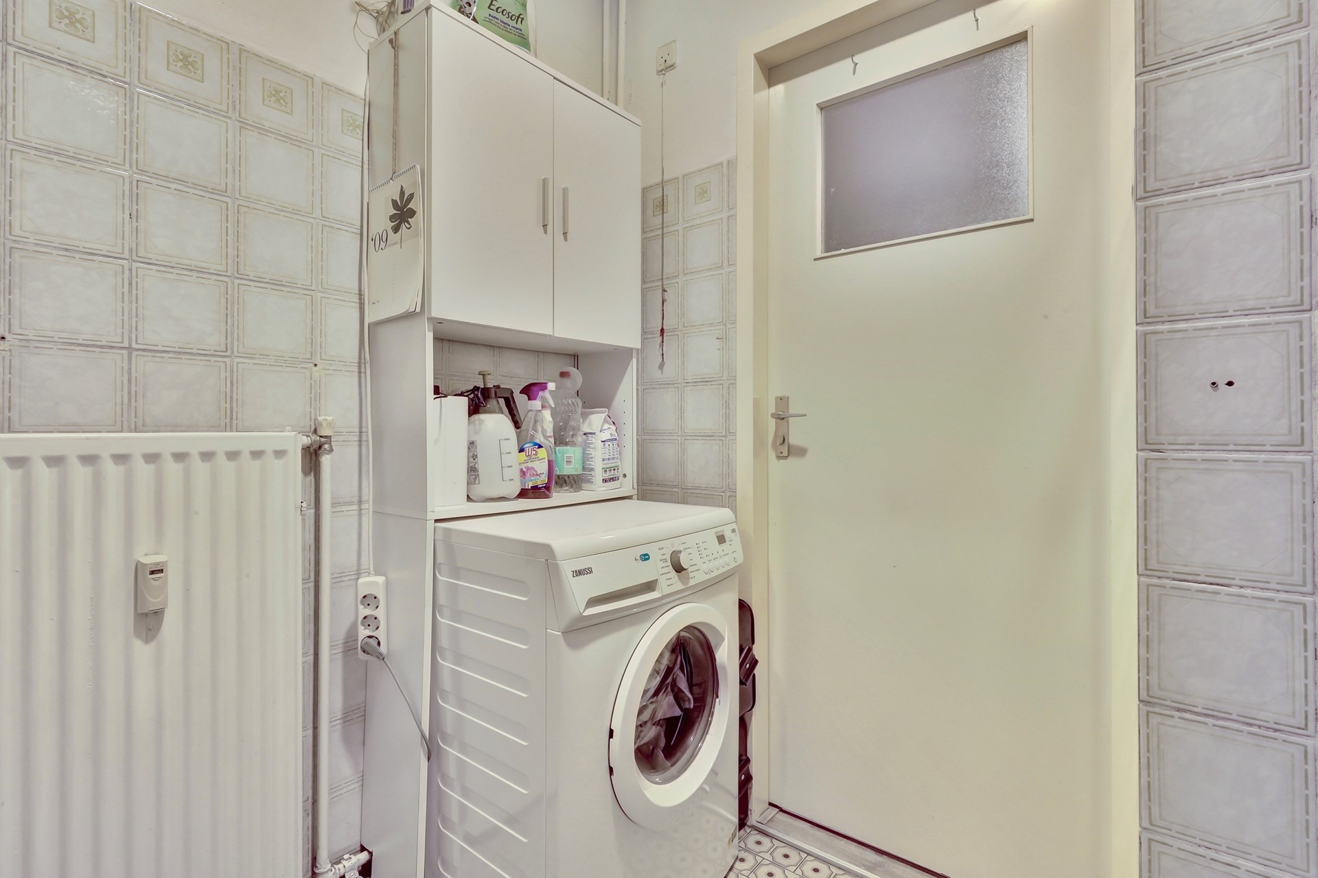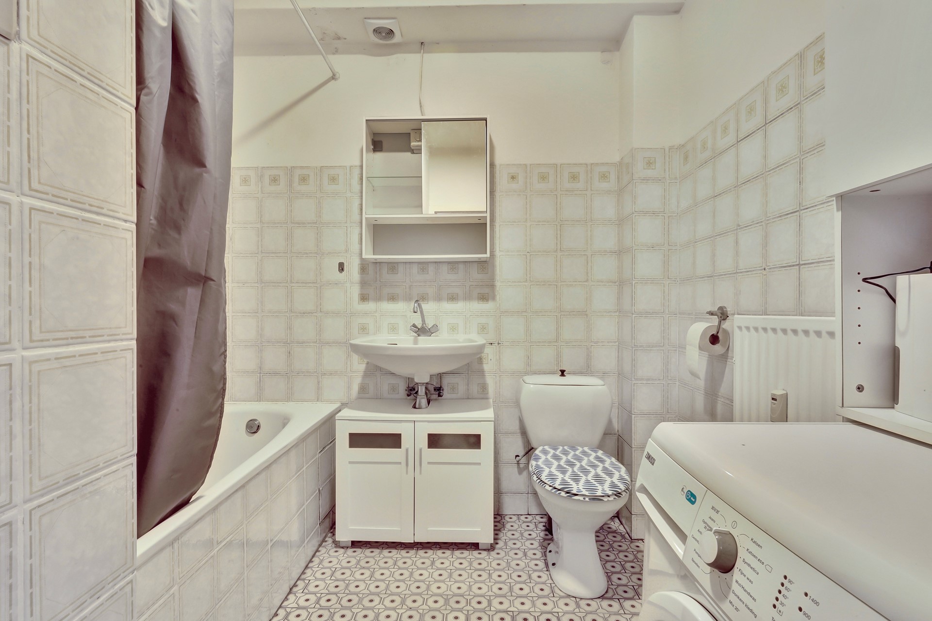 Vanuit de keuken loop je door naar de badkamer met een bad/douchecombinatie, wastafel, toilet, mechanische ventilatie, radiator en aansluiting voor de wasmachine.