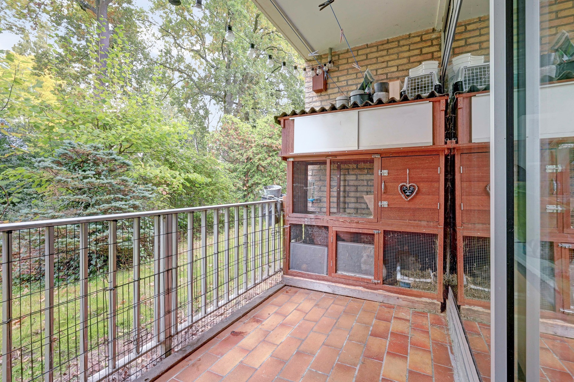 De lichte woonkamer (ca. 19 m2) is een heerlijke plek om te ontspannen, met grote ramen en een schuifpui naar het (overdekte) balkon waar je lekker buiten kunt zitten met uitzicht op het groen. Vanuit de woonkamer bereik je de slaapkamer (1,94 x 2,11 m) en een vaste kast biedt extra opbergruimte.