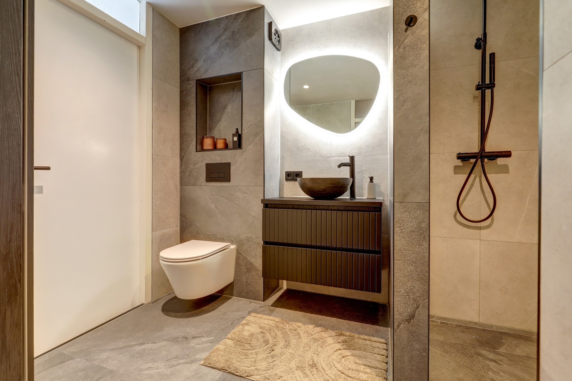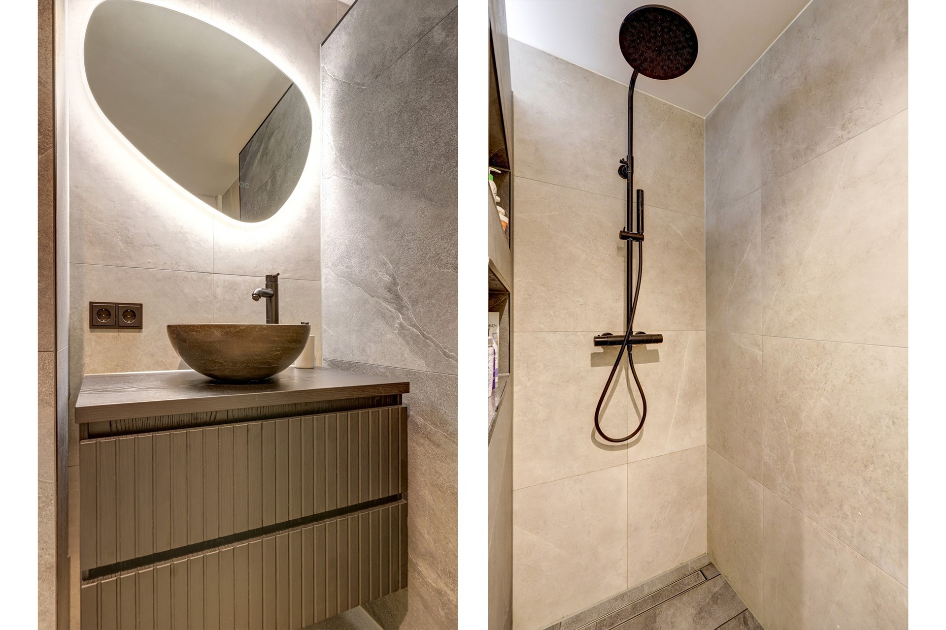 De tweede verdieping biedt drie fijne slaapkamers van ca. 15 m², 11 m² en 9 m². De ouderslaapkamer beschikt over een vaste kast en directe toegang tot de moderne badkamer (2024) met wastafelmeubel, inloopdouche en tweede toilet. De badkamer is voorzien van een verwarmde, verlichte spiegel met Bluetooth-boxen – luxe en praktisch in één. Op de overloop bevindt zich een vaste kast met de C.V.-