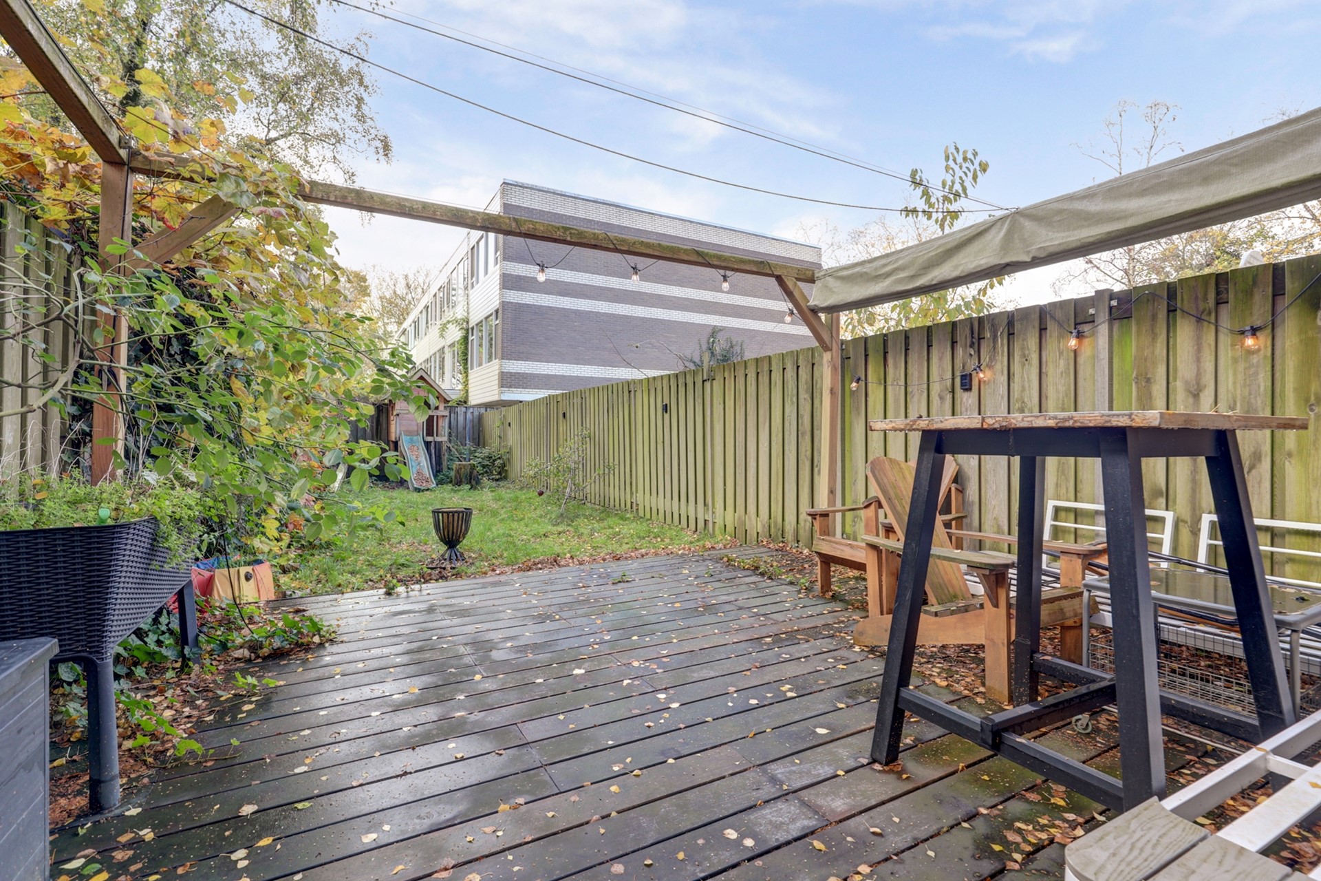 De tuin ligt op het zuidwesten en is circa 17 meter diep en 4,5 meter breed. Achter de tuin bevindt zich een brede groenzone, wat zorgt voor een heerlijk vrij uitzicht en veel privacy. Of je nu wilt genieten van de zon of de schaduw, hier kan het allebei.