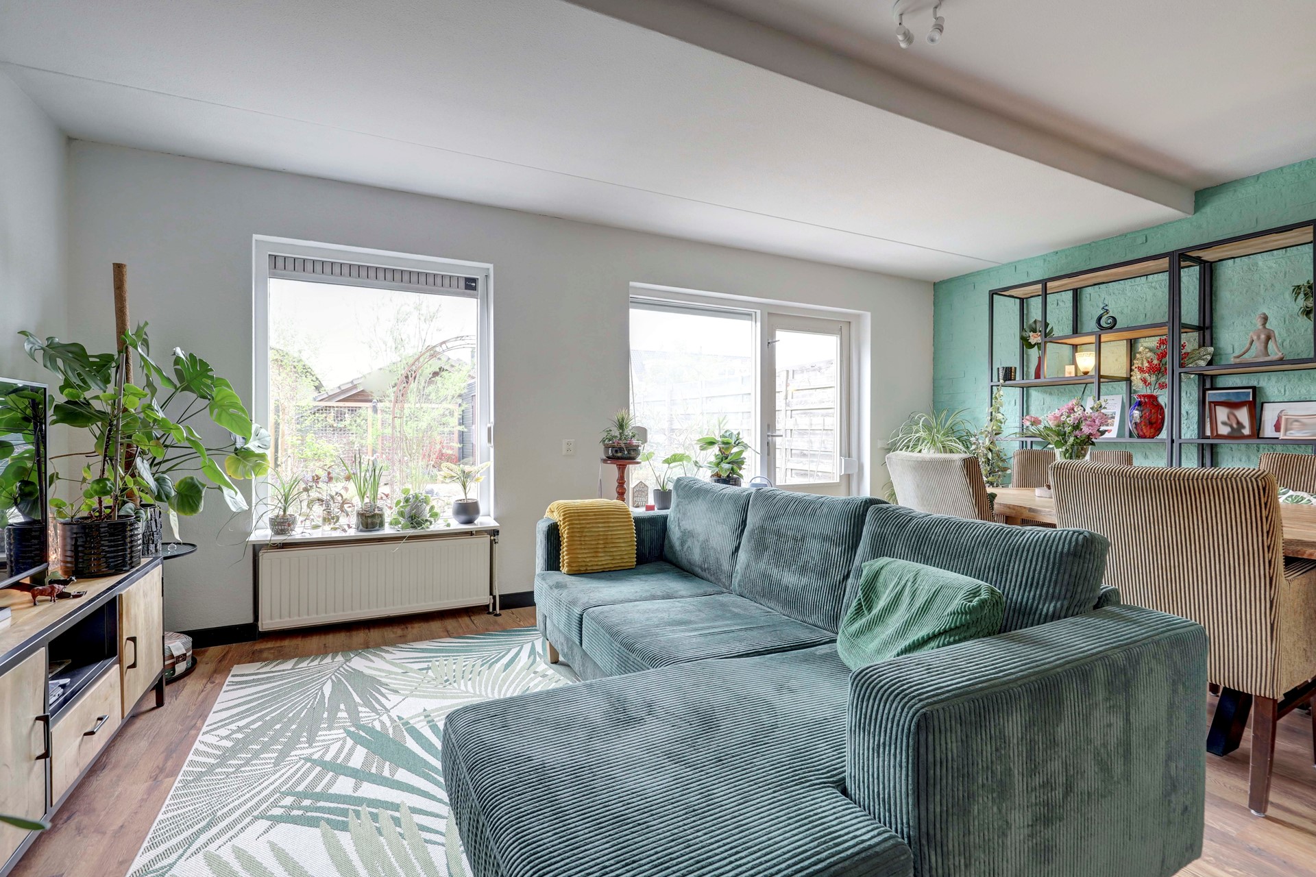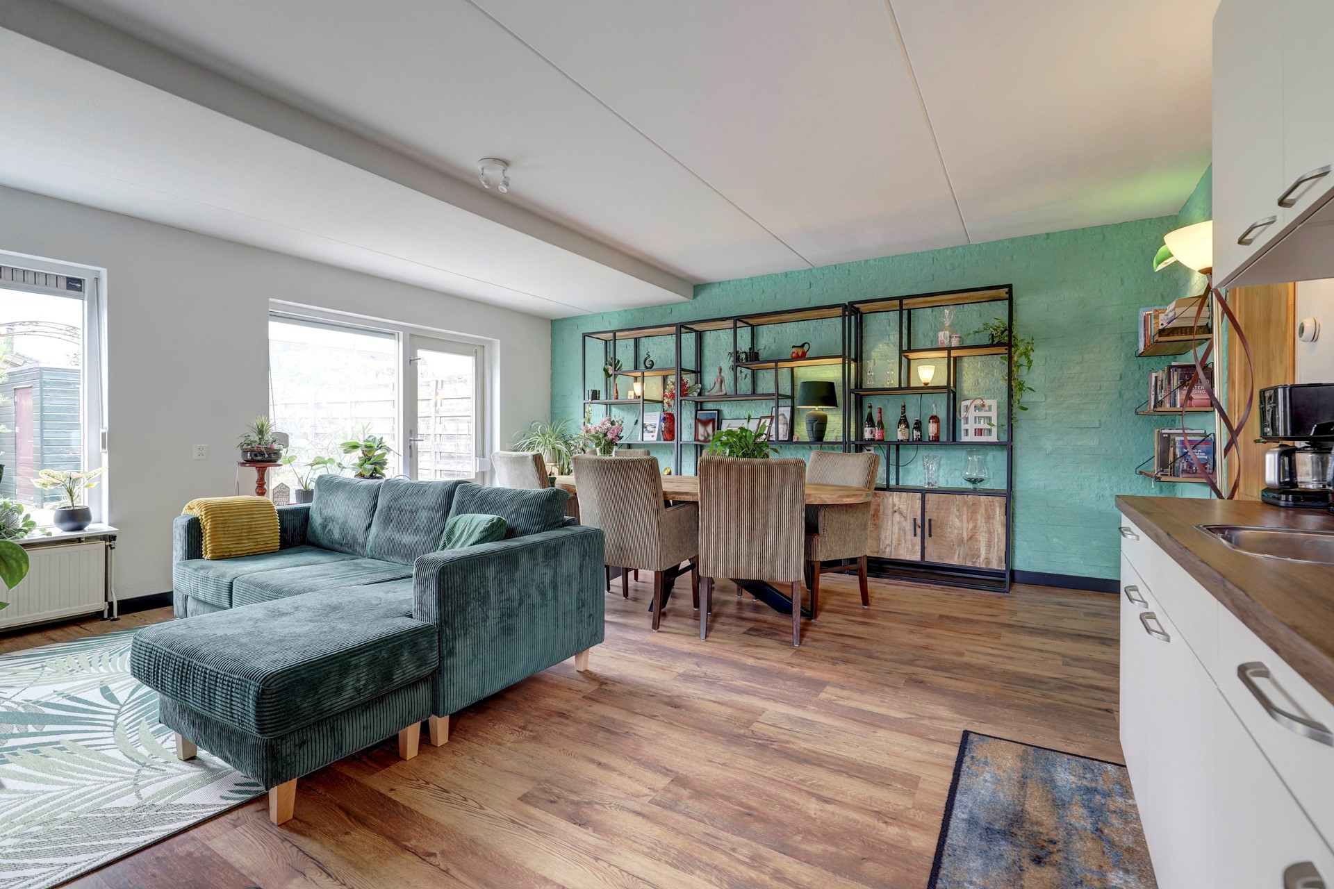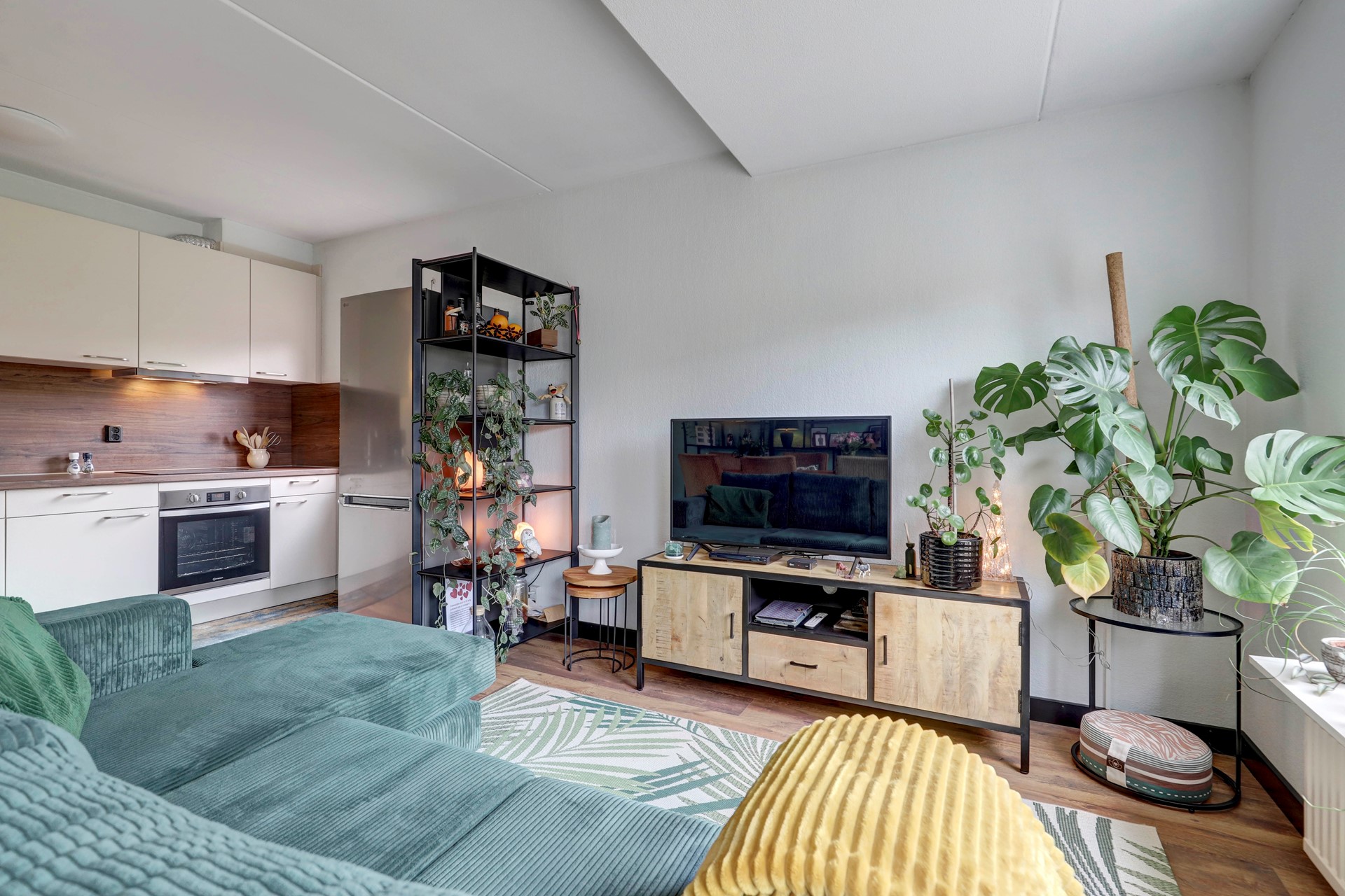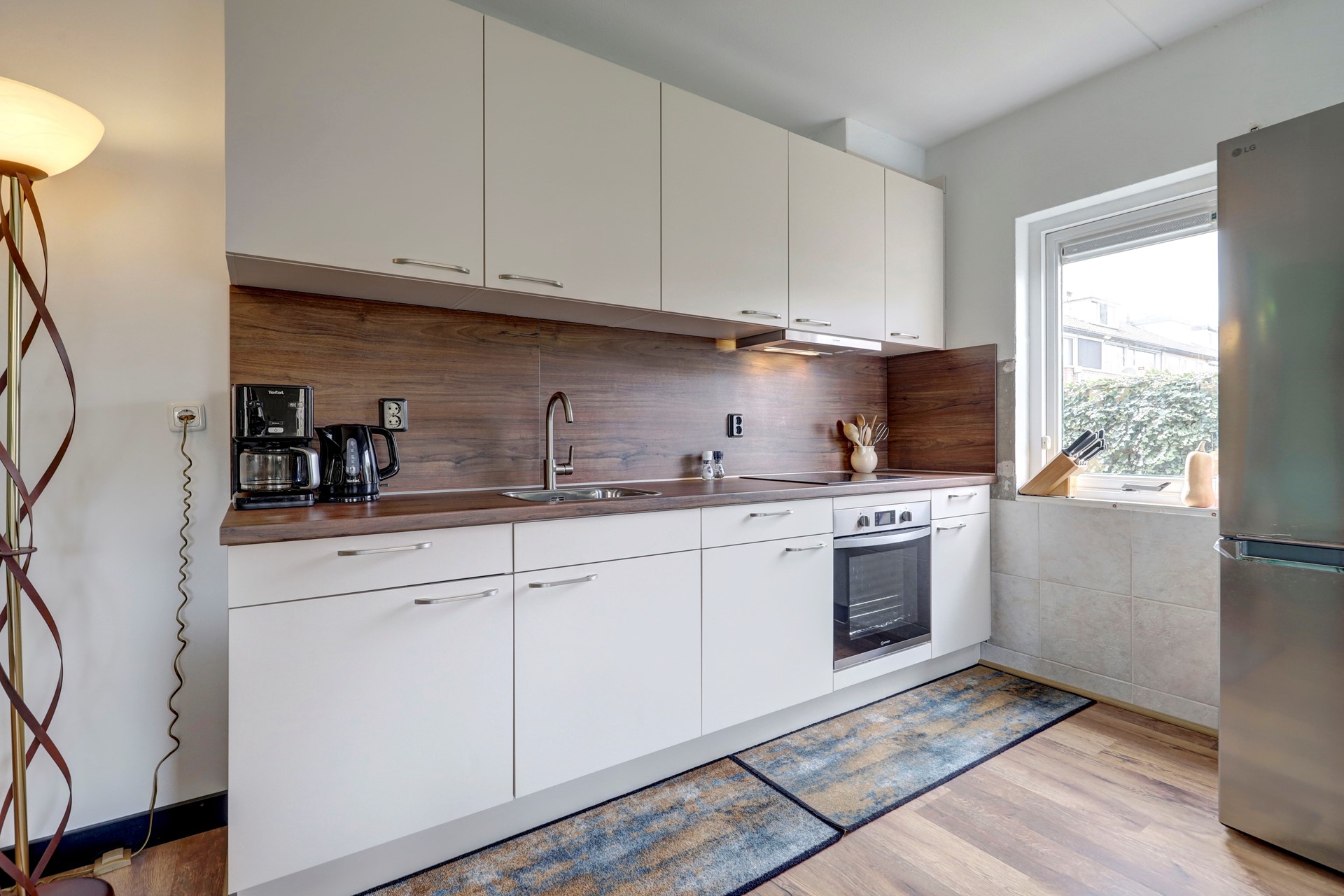 De woning beschikt over een lichte woonkamer van circa 31 m2, gelegen aan de achterzijde en georiënteerd op de tuin. Dankzij het zijraam is er extra lichtinval en een vrij uitzicht. De keuken is in 2024 vernieuwd en voorzien van moderne inbouwapparatuur, wat zorgt voor een eigentijdse uitstraling.