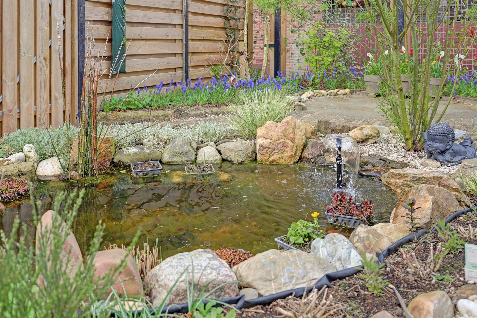 De achtertuin is recentelijk geheel opnieuw aangelegd met beplanting, tuinverlichting, waterpartij en (gedeeltelijk) een nieuwe schutting. Jouw eigen klein paradijsje waar je in de zomer heerlijk kan relaxen. De tuin is gelegen op het noordwesten, meet circa 6,7 meter breed en 11 meter diep en beschikt over een praktische zijingang. In de tuin bevindt zich een eigen berging met elektra. Daarnaast is er een parkeerplaats direct voor de deur aanwezig.