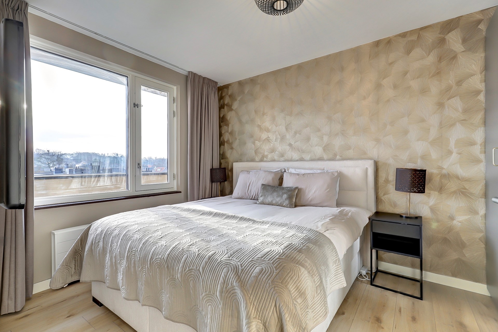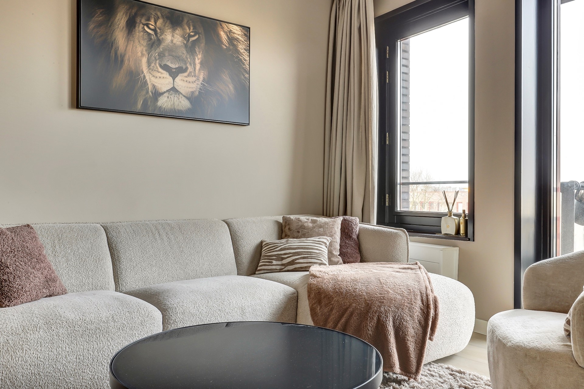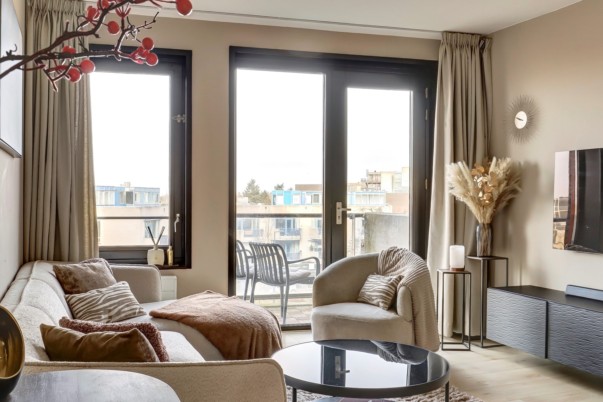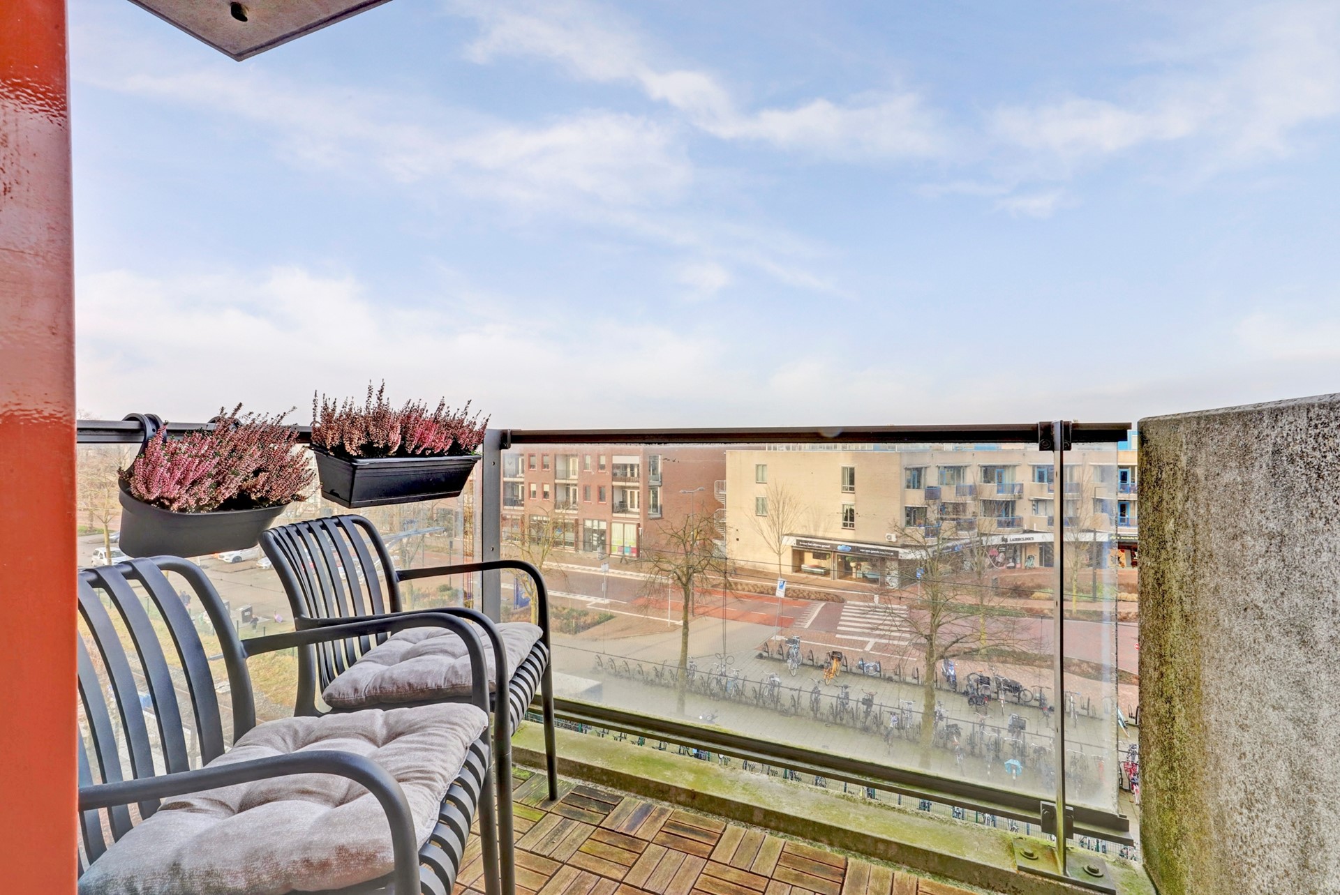 Vanuit de woonkamer is het balkon bereikbaar met een geweldig uitzicht op het stadscentrum en de iconische Concordiamolen.