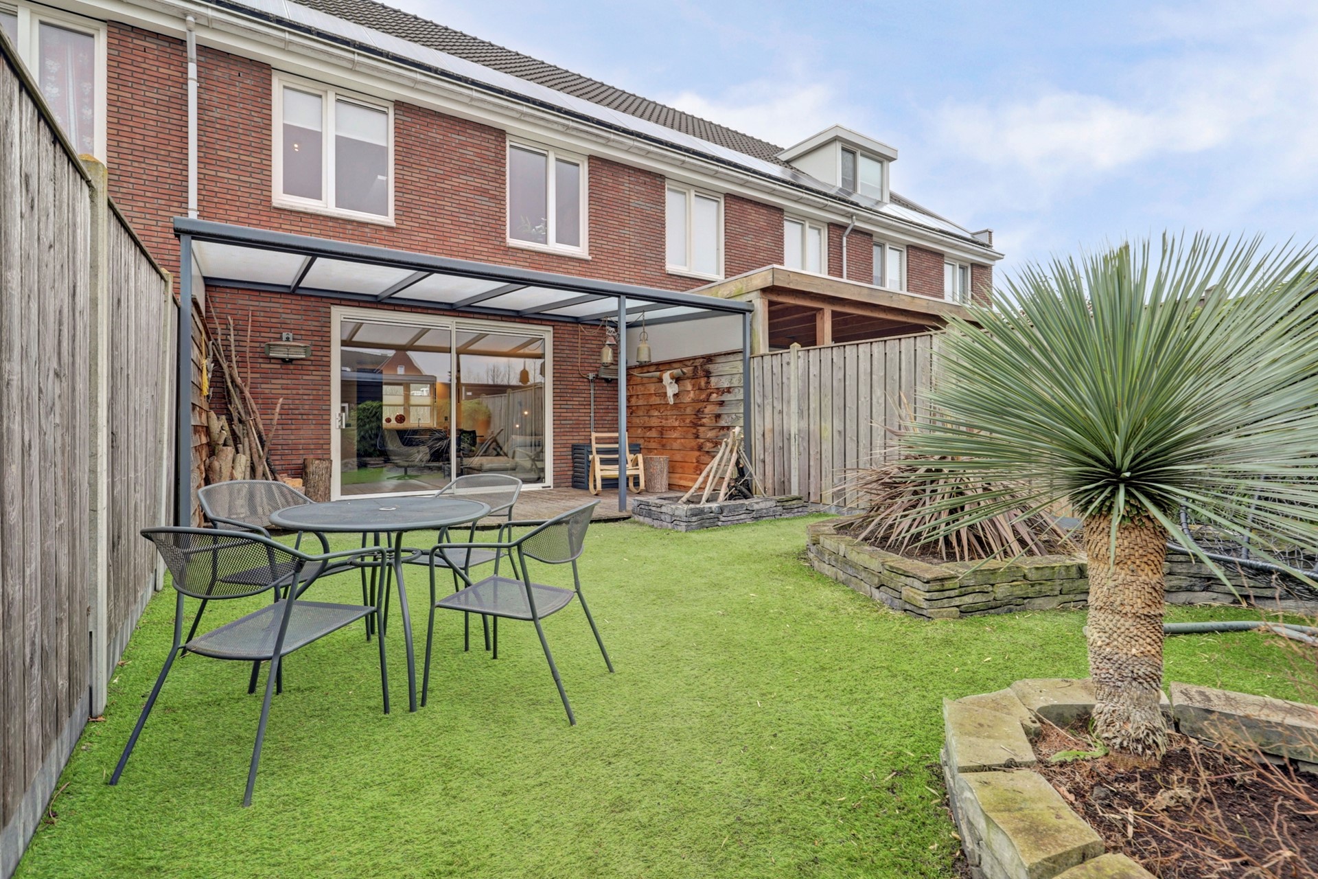 De zonnige en onderhoudsvriendelijke achtertuin ligt op het zuidwesten en is fraai aangelegd. Dankzij de kunststof overkapping kunt u hier al vroeg in het voorjaar en tot laat in het najaar heerlijk buiten zitten. De tuin is circa 13 meter diep en 6 meter breed en beschikt over een vergrote houten berging (2,8 m x 5,83 m).