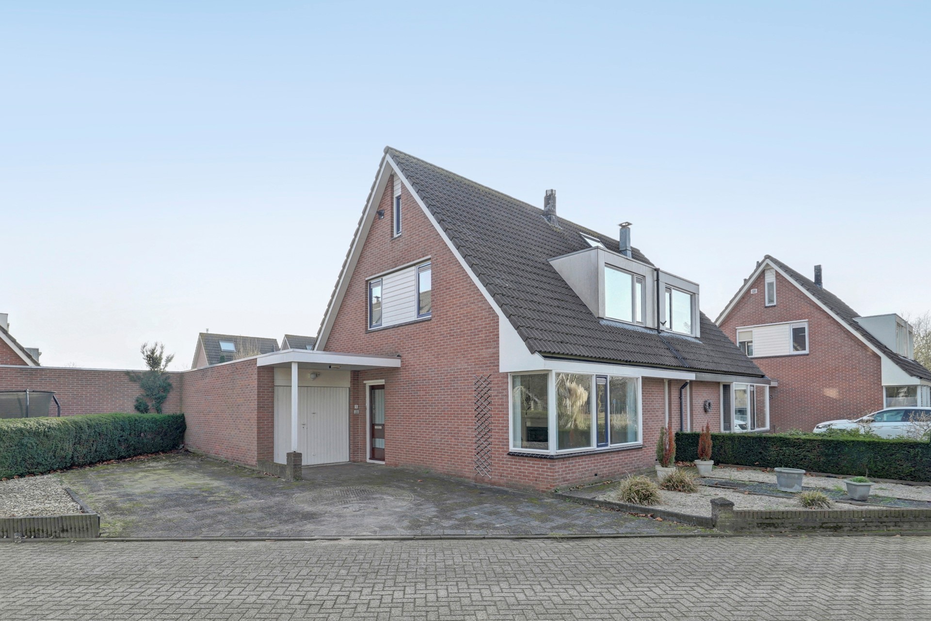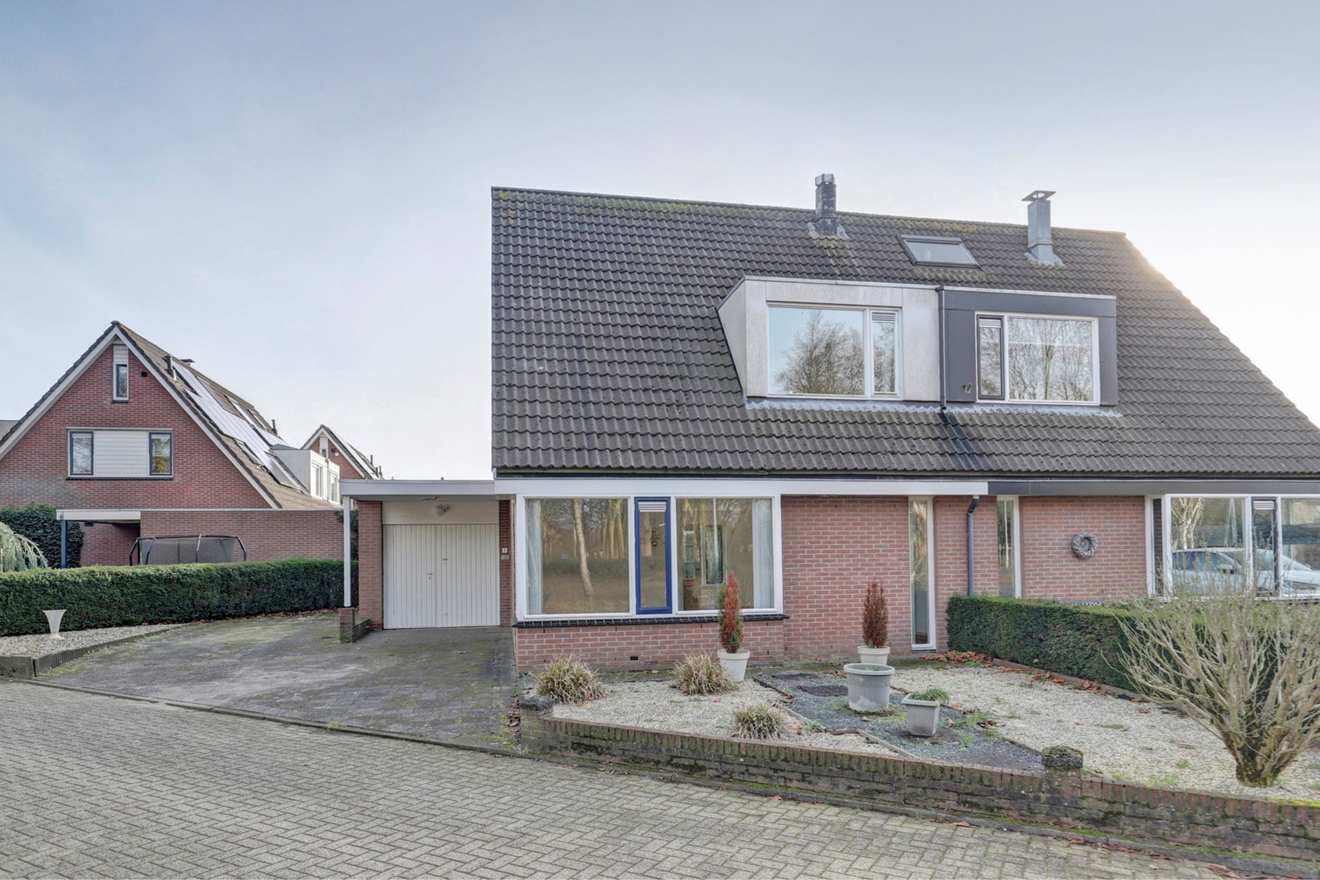 Via de eigen oprit bereikt u de stenen garage van ca. 6,4 x 3 meter, voorzien van elektra en een deur naar de achtertuin. Perfect voor fietsen, opslag of hobby’s.