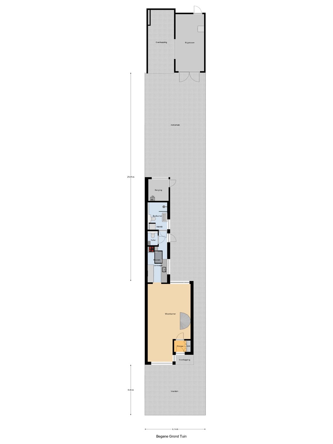 De diepe achtertuin van circa 21 meter diep en 6 meter breed is gelegen op het zuidoosten en biedt volop zon en privacy. Achter in de tuin staat een vrijstaand bijgebouw van circa 17 m² met veranda. Dit volledig geïsoleerde bijgebouw is voorzien van elektra, UTP-aansluitingen en een vaste internetglasvezelverbinding, en beschikt over dubbele openslaande deuren. Een ideale plek voor een kantoor aan huis, hobbyruimte of een ontspannen loungeplek.