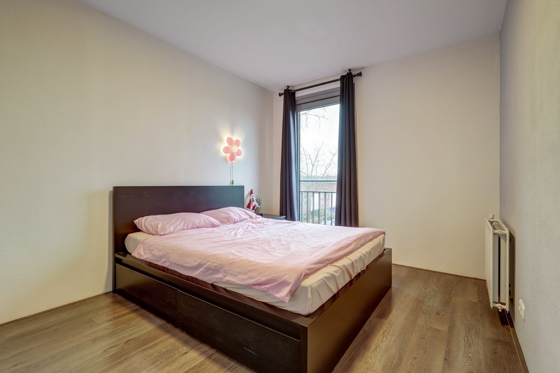 Het appartement beschikt over twee slaapkamers, beide voorzien van een Frans balkon met draai-/kiepdeuren, wat zorgt voor een prettige lichtinval en ventilatie. De badkamer is ruim opgezet en compleet uitgerust met een inloopdouche, dubbele wastafel met meubel en een designradiator.